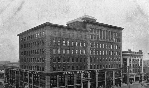 By 1920, Ramsey’s stores occupied over 175,000 square feet. In 1927, a new store opened at 10048 101 Avenue. Over the next 17 years, his stores became Edmonton’s largest and most influential retail chain. In 1920, the Edmonton Bulletin published an article titled “James Ramsey Department Store,” hailing the chain as the beginning of modern retail in the city. The store boasted 20 departments, offering groceries, carpets, home furnishings, and women’s lingerie.